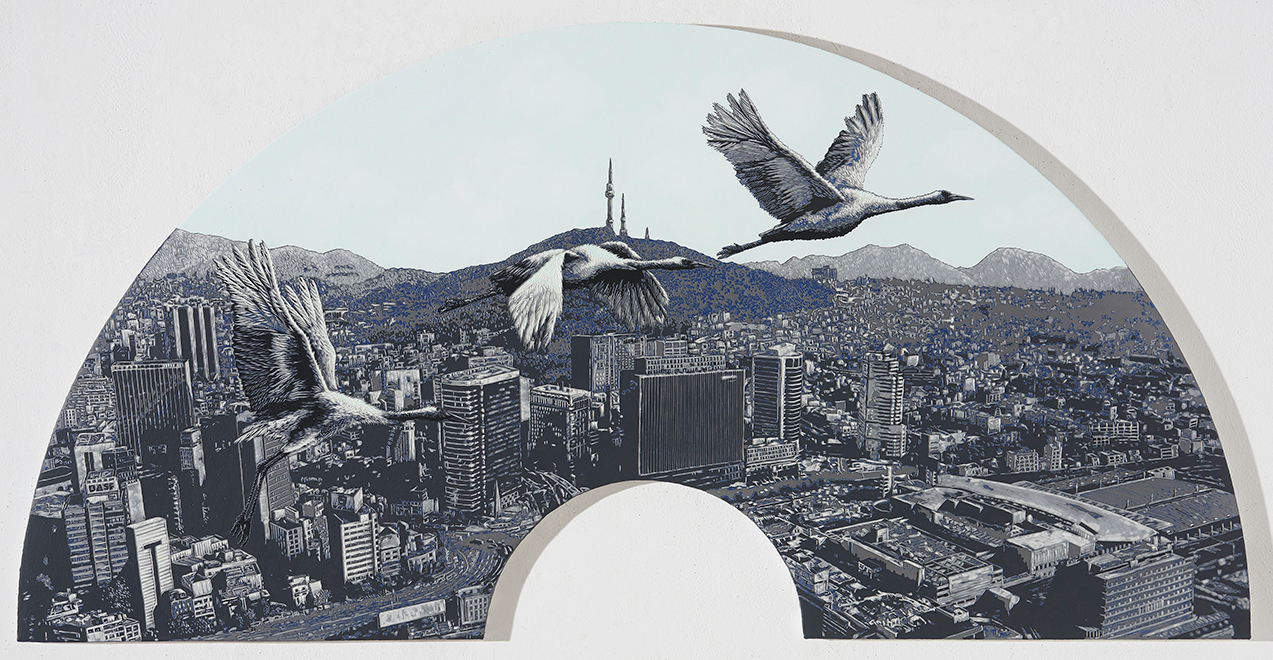 Acrylic and Rice Paper on Korean Paper 130.3×32.3cm (6ea), Folding Screen Installation